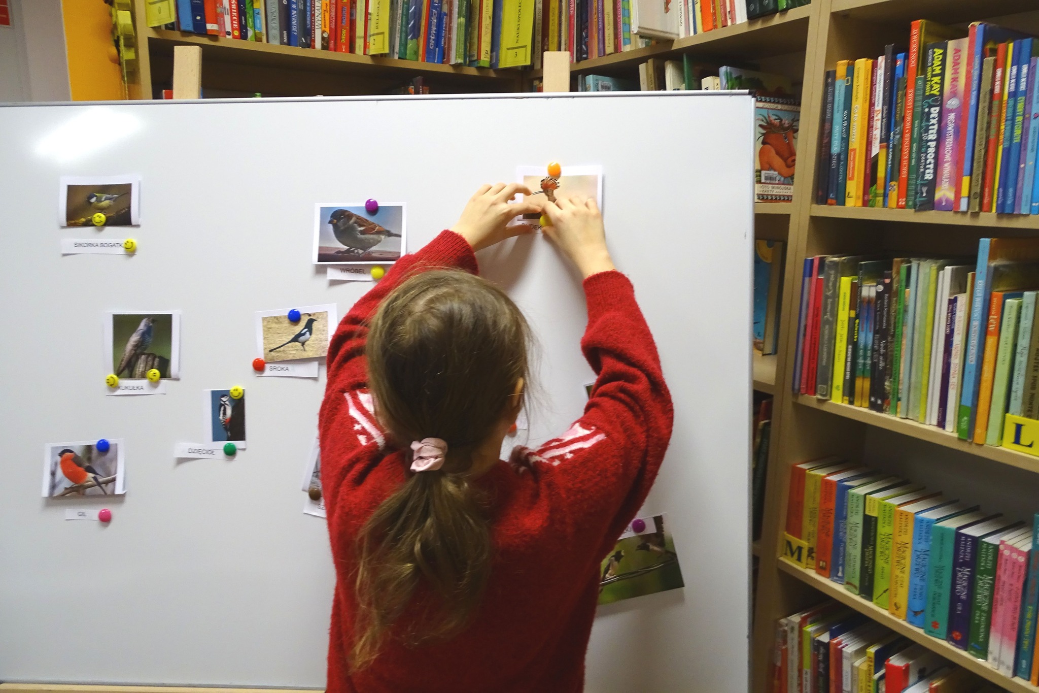 Tematem feryjnego spotkania, które odbyło się z dziećmi 26 stycznia w Bibliotece Gminnej w Kątach były ptaki. Uczestniczki zajęć miały okazję posłuchać nagrań ptasich śpiewów, a także porozmawiać o tym, które ptaki na zimę odlatują, a które spędzają ją w Polsce i jak można im pomóc.