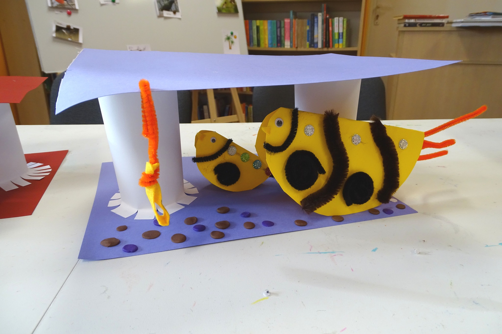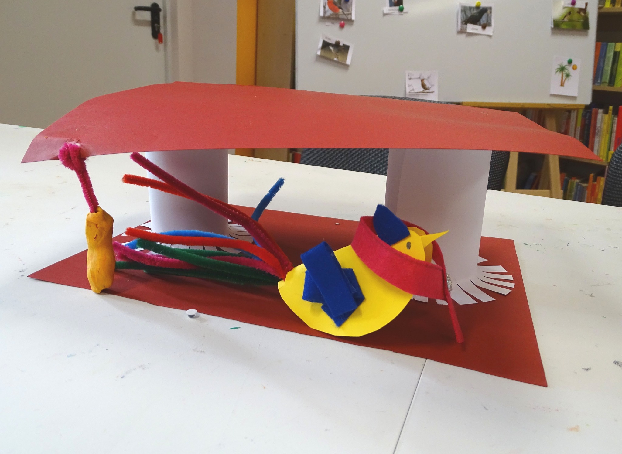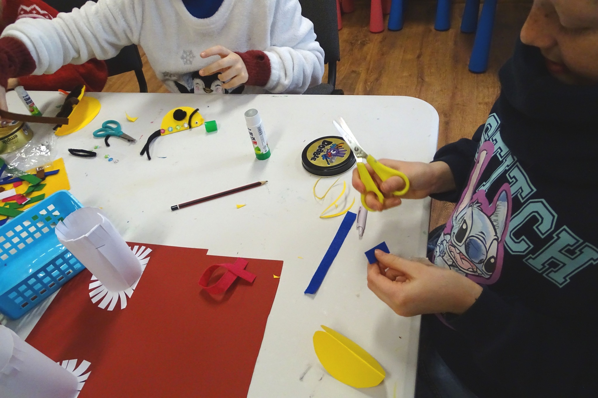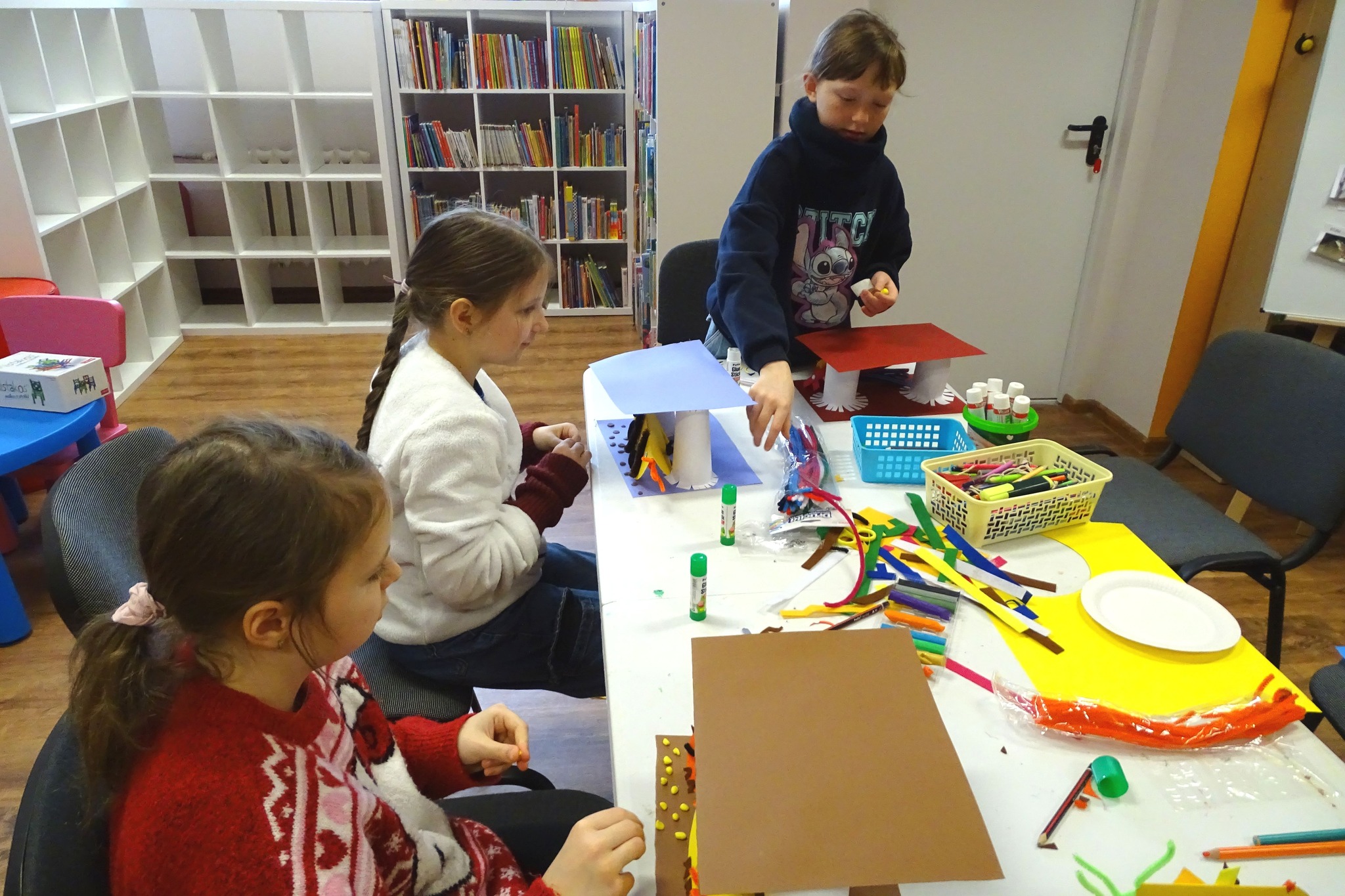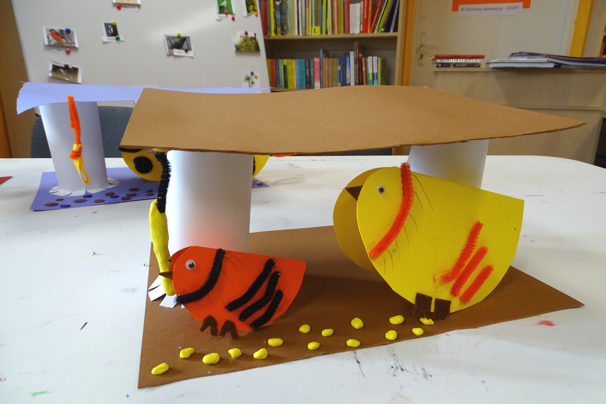 Podczas części plastycznej dzieci wykonały ptaki i karmniki.